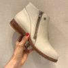 Par de botas ASSIA color visón con cierre lateral y taco bajo cuadrado en fondo blanco Par de botas ASSIA color visón con cierre lateral y taco bajo cuadrado en fondo blanco
