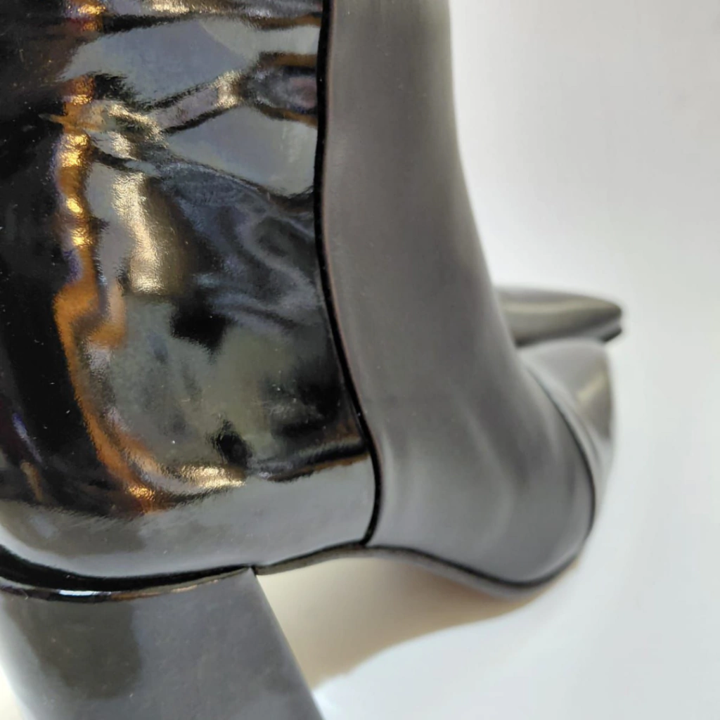 Descubre las Botas MAGNOLIA, un par que combina sofisticación y confort. Estas exquisitas botas de cuero negras se destacan por su punta peltre y talón en charol negro, con el taco forrado que aportan un toque de distinción a tu outfit.